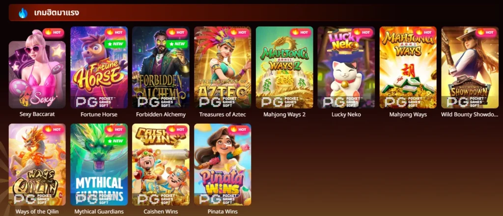 ตอบ : รวมค่ายดังไว้ครบจบในที่เดียวครับ ไม่ว่าจะเป็น PG Soft, Joker Gaming, Pragmatic Play หรือ Jili Slot ทุกเกมส่งตรงจากค่ายแม่ ภาพสวยคมชัดระดับ HD และแตกง่ายแน่นอน